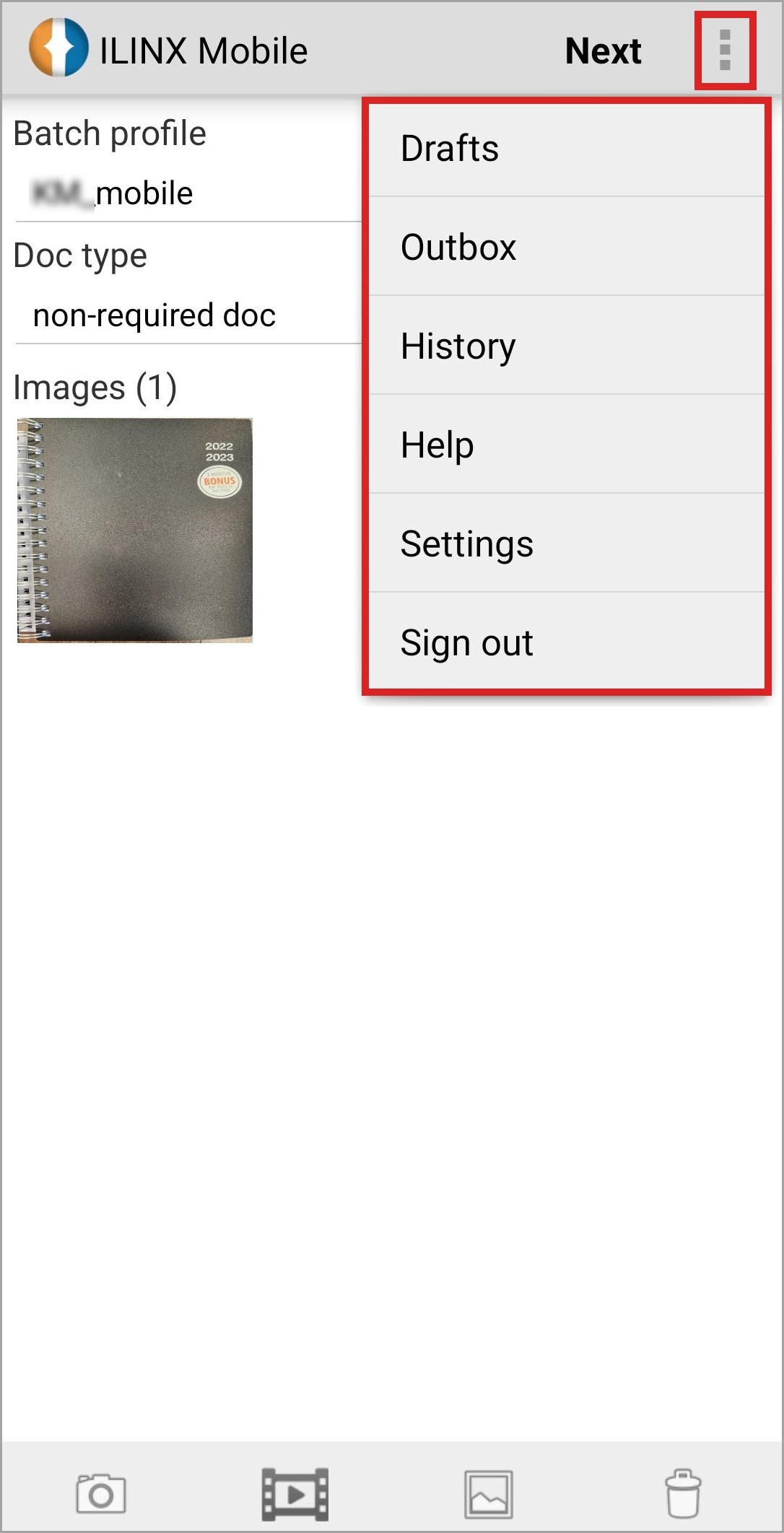 Organizations may set permissions for a Batch Profile that requires content to be entered in an Index field. Within ILINX Capture Mobile if you are offline and there is at least 1 required field, the batch will be moved to Drafts. Unlike the Outbox, batches stored here will not be submitted automatically.