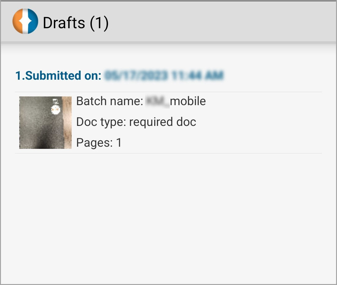Step 3: On the Drafts screen there may be several batches listed that require updating and submitting, tapping on a batch will open the Index Field Screen.
